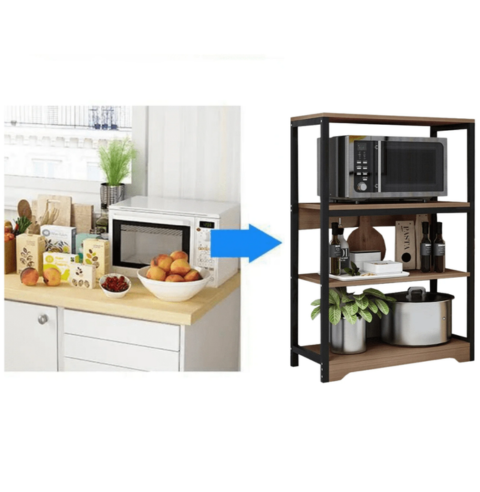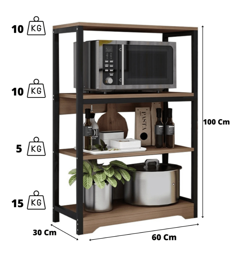 Полиця-стелаж — це практичне та стильне рішення для організації зберігання у вашому домі. Завдяки 4 містким ярусам на ній зручно розміщувати кухонну техніку, посуд, банки, спеції, рослини або декоративні елементи.